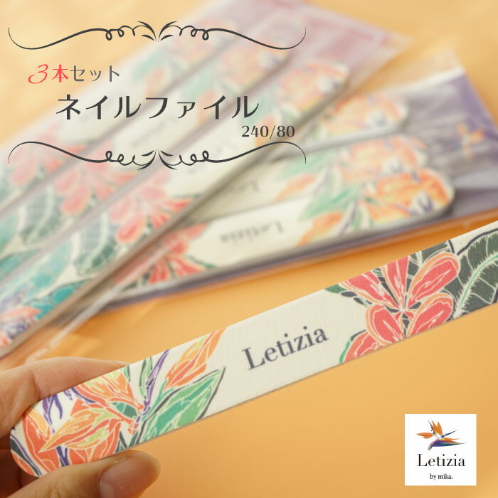 【絵柄が可愛い!】ネイルファイル 3本セット/Letizia(レティジア)/ジェルネイル/ネイリストmika./ネイリストみか/トロピカル/両面/爪やすり/240/80/